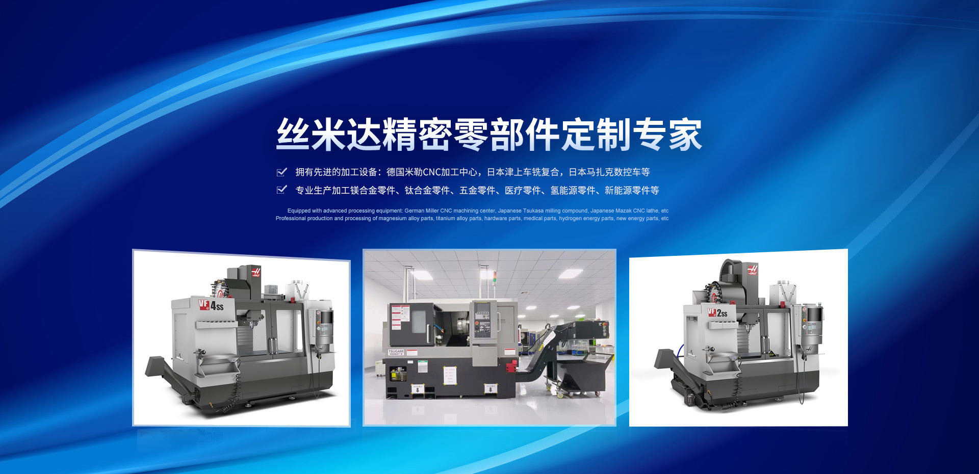 公司配有德国米勒CNC加工中心,日本津上车铣复合,日本马扎克数控车,STAR斯大自动走芯机等先进精密设备,丝米达一直以来专注于精密数控零件加工,积累了多年的机加工经验,我们以可靠的质量。